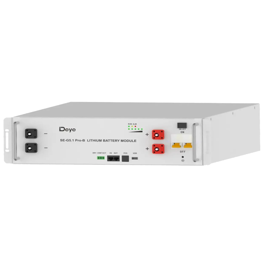 Deye SE-G5.1 Pro-B 51.2В — це високоякісна модульна літій-залізо-фосфатна батарея (LiFePO₄), розроблена для домашніх і комерційних систем зберігання енергії.