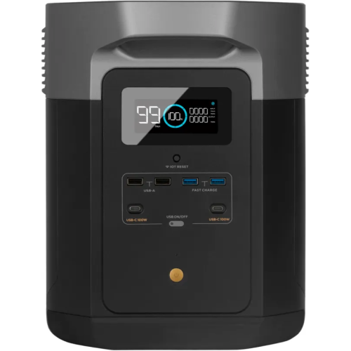 EcoFlow DELTA MAX має літій-іонний акумулятор, навіть після 800 зарядок він триматиме до 80% потужності. Зарядний пристрій досить портативний – його вага становить 22 кг.