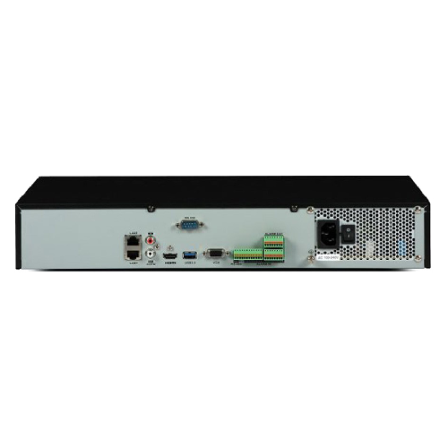 Реєстратор має можливість одночасного підключення до 16 IP камер. Максимальна роздільна здатність підключається IP камери - 8Мп. Для збереження відеозаписів можна встановити 4 жорстких диска SATA максимальним обсягом до 6 ТБ кожен (всього до 24 ТБ).