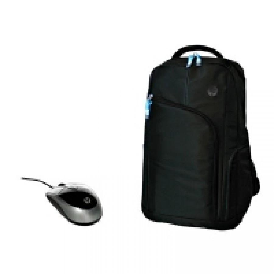 HP 17.3 "Backpack and mobile mouse bundle - цей комплект ідеально підходить для мандрівників. Рюкзак має ущільнене внутрішнє відділення для ноутбука і кишені для телефону та ключів. Для установки миші не потрібно драйвер, просто підключіть і працюйте.