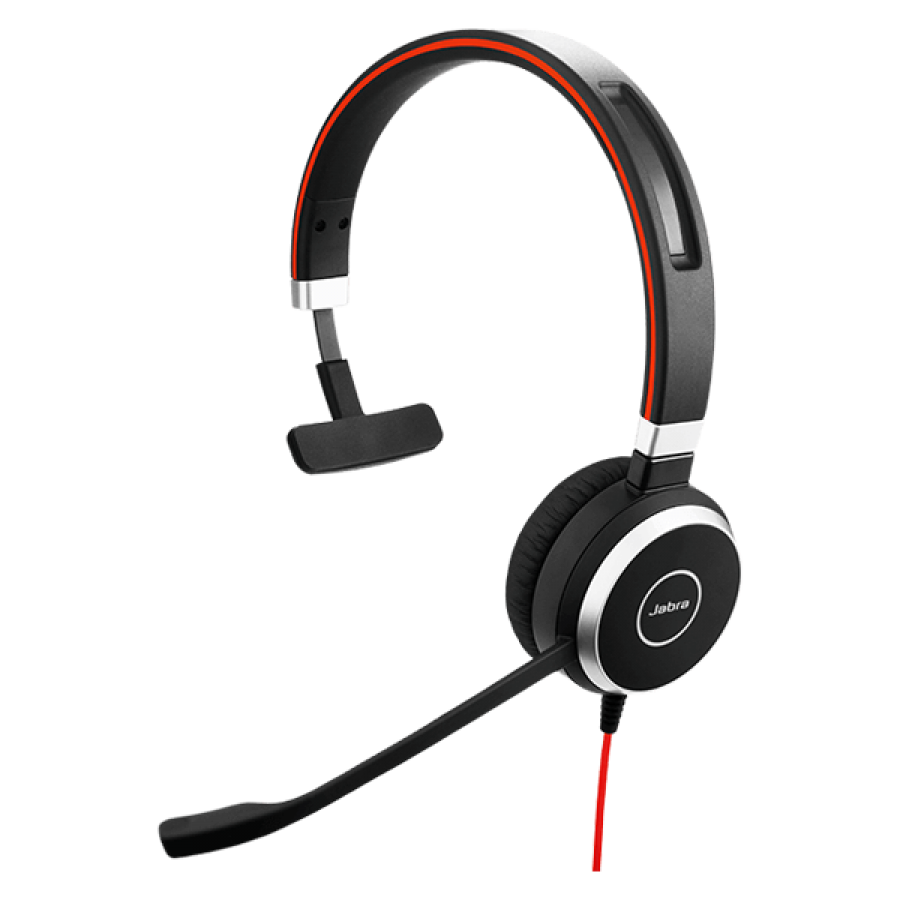Jabra Evolve 40 MS Mono USB (6393-823-109) – гарнітура на одне вухо з амбушюрами зі шкірозамінника, індикатор зайнятості, підключення через USB або mini Jack 3,5мм, наявність кнопки відповіді та регулювання звуку на шнурі гарнітури, штанга мікрофона паз оголов'я. Укомплектований м'яким чохлом. Сертифіковано для Microsoft Skype for Business/Lync.