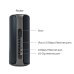 | Діапазони Wi-Fi | 6 ГГц (4x4/320 МГц, 4K-QAM): 11 530 Мбіт/с 5 ГГц-1 (4x4/240 МГц, 4K-QAM): 8647 Мбіт/с, виділений транспортний зв'язок 5 ГГц-2 (4x4/160 МГц, 4K-QAM): 5765 Мбіт/с 2,4 ГГц (4x4/40 МГц, 1K-QAM): 1147 Мбіт/с |